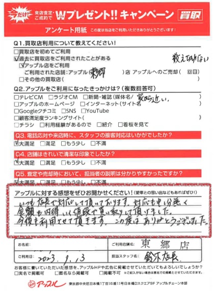 お車のご相談・ 査定だけでもOK! カンタン 入力 30秒 アップルがブランド買取始めました! お電話でも受付中! 受付時間9:30 ~ 18:30 0561-38-8448 お車のご相談・ 査定だけでもOK! カンタン 入力 30秒 アップルがブランド買取始めました! お電話でも受付中! 受付時間9:30 ~ 18:30 0561-38-8448 アップルがブランド買取始めました! お電話でも受付中! 受付時間9:30 ~ 18:30 0561-38-8448 店舗情報 在庫車 スタッフ紹介 ブログ お客様の声 キャンペーン 無料査定 click お客様の声 ご記入日: 2023/09/13 S様 車名:トヨタ C-HR 満足度★★★★★いつも店長で対応して頂いております。対応も申し分無く、金額も納得いく値段で買い取りして頂けました。今後も利用させて頂きます。この度はありがとうございました。 前へ 次へ お客様の声一覧を見る