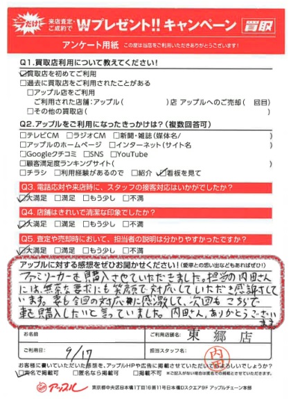 妻も今回の対応に感激して、次回もこちらで車を購入したいと言っていました。内田さん、ありがとうございます。