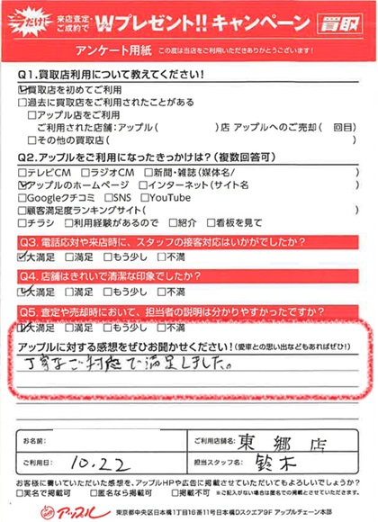 お車のご相談・ 査定だけでもOK! カンタン 入力 30秒 アップルがブランド買取始めました! お電話でも受付中! 受付時間9:30 ~ 18:30 0561-38-8448 お車のご相談・ 査定だけでもOK! カンタン 入力 30秒 アップルがブランド買取始めました! お電話でも受付中! 受付時間9:30 ~ 18:30 0561-38-8448 アップルがブランド買取始めました! お電話でも受付中! 受付時間9:30 ~ 18:30 0561-38-8448 店舗情報 在庫車 スタッフ紹介 ブログ お客様の声 キャンペーン 無料査定 click お客様の声 ご記入日: 2023/10/22 S様 車名:スバル レヴォーグ 満足度★★★★★丁寧なご対応で満足しました。 前へ 次へ お客様の声一覧を見る