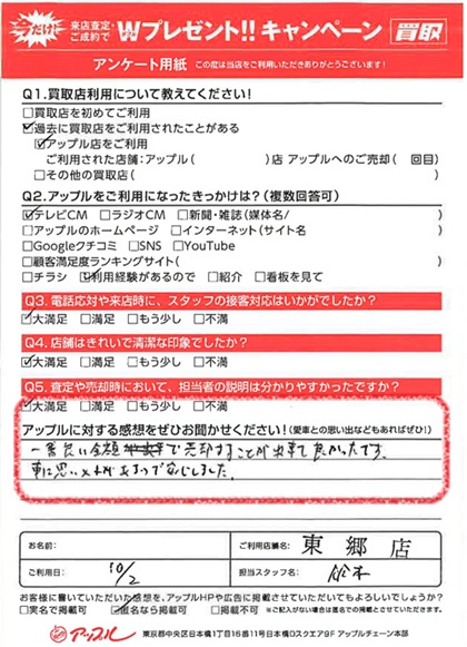 お車のご相談・ 査定だけでもOK! カンタン 入力 30秒 アップルがブランド買取始めました! お電話でも受付中! 受付時間9:30 ~ 18:30 0561-38-8448 お車のご相談・ 査定だけでもOK! カンタン 入力 30秒 アップルがブランド買取始めました! お電話でも受付中! 受付時間9:30 ~ 18:30 0561-38-8448 アップルがブランド買取始めました! お電話でも受付中! 受付時間9:30 ~ 18:30 0561-38-8448 店舗情報 在庫車 スタッフ紹介 ブログ お客様の声 キャンペーン 無料査定 click お客様の声 ご記入日: 2023/10/02 N様 車名:トヨタ C-HR 満足度★★★★★一番良い金額で売却することが出来て良かったです。車に思い入れがあるので 安心しました。 前へ 次へ お客様の声一覧を見る