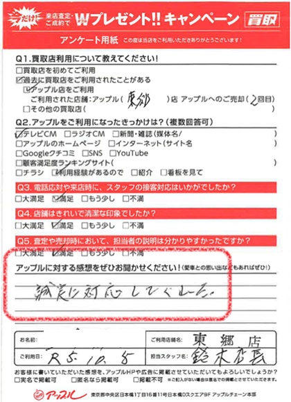 お車のご相談・ 査定だけでもOK! カンタン 入力 30秒 アップルがブランド買取始めました! お電話でも受付中! 受付時間9:30 ~ 18:30 0561-38-8448 お車のご相談・ 査定だけでもOK! カンタン 入力 30秒 アップルがブランド買取始めました! お電話でも受付中! 受付時間9:30 ~ 18:30 0561-38-8448 アップルがブランド買取始めました! お電話でも受付中! 受付時間9:30 ~ 18:30 0561-38-8448 店舗情報 在庫車 スタッフ紹介 ブログ お客様の声 キャンペーン 無料査定 click お客様の声 ご記入日: 2023/10/05 K様 車名:トヨタ トヨエース 満足度★★★★誠実に対応してくれた。 前へ 次へ お客様の声一覧を見る