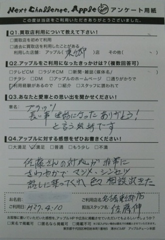 佐藤さんの対応が非常にさわやかで マジメ・シンセツ