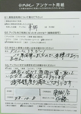 他店と比べて高価で買い取っていただき嬉しく思っております
