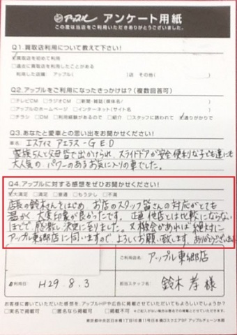 また機会があれば絶対にアップル東郷店に伺いますので、よろしくお願い致します。ありがとうございました。