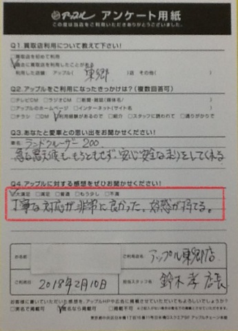 丁寧な対応が非常に良かった。好感が持てる。