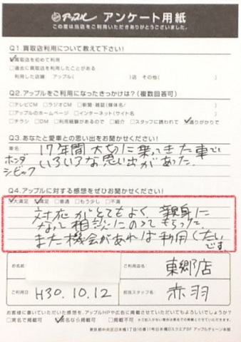 対応がとても良く、親身になって相談にのってもらった。