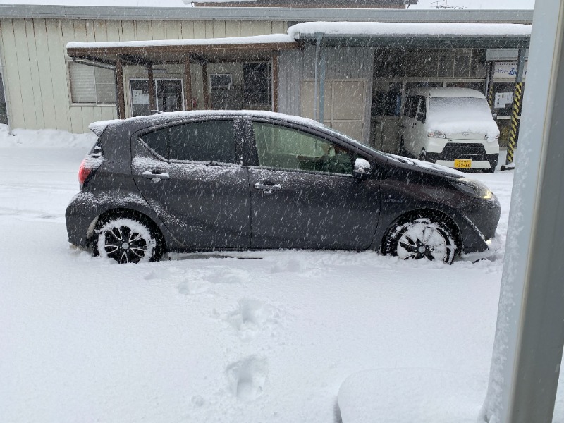 愛車のアクアをゆっくりと前進したら。。。。雪にはまってしまった😭