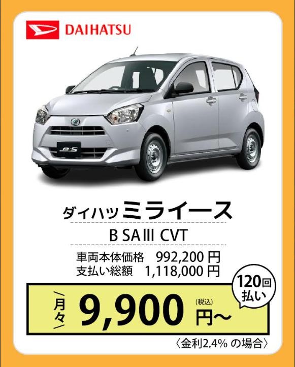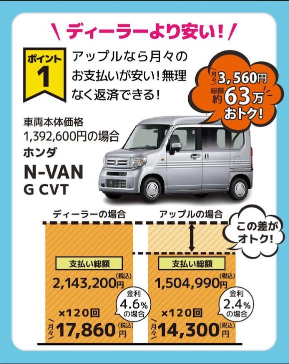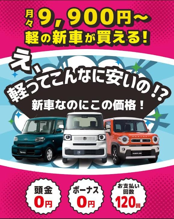 お車のご相談・ 査定だけでもOK! カンタン 入力 30秒 アップルがブランド買取始めました! お電話でも受付中! 受付時間10:00 ~ 18:30 0120-556-522 お車のご相談・ 査定だけでもOK! カンタン 入力 30秒 アップルがブランド買取始めました! お電話でも受付中! 受付時間10:00 ~ 18:30 0120-556-522 アップルがブランド買取始めました! お電話でも受付中! 受付時間10:00 ~ 18:30 0120-556-522 店舗情報 在庫車 スタッフ紹介 ブログ お客様の声 キャンペーン お得 無料査定 click [ 未分類 ] 2025/09/11 (木) 09:10 月々9,900円~?! 新車が安く買える★ こんにちは!アップル黒埼インター店より、新しい軽自動車の買い方のご紹介です!!なんとローン金利2.4%の低金利で120回払いが可能です!!頭金なし!ボーナスなし!!回数は120回まで!!!もちろんオールメーカー取り扱い可能♪銀行ローンや、ディーラーさんのローンと比べてみてください★詳しくはアップル黒埼インター店へお問い合わせくださいm(__)m 2025-09-11 9:10:45 新しい記事へ 古い記事へ 最新記事 新潟市O様!! C250 レザーエクスクルーシブPKGご納車です㊗️『フェアレディZ専門』とまでは言えませんが、、、10月も、、好評につき★オートローン低金利キャンペーン★さらにお得情報あり!!!月々9,900円~?! 新車が安く買える★9月は、オートローン低金利キャンペーン★ 店舗情報に戻る 月別アーカイブ 2026年02月(2)2025年10月(1)2025年09月(1)2025年08月(3)2025年07月(1)2025年06月(5)2025年05月(4)2025年04月(5)2025年02月(6)2025年01月(6)2024年10月(12)2024年09月(10)2024年08月(4)2024年07月(7)2024年06月(3)2024年05月(1)2024年04月(2)2024年03月(2)2024年02月(2)2024年01月(1)2023年12月(1)2023年11月(1)2023年10月(2)2023年09月(2)2023年08月(3)2023年04月(1)2023年03月(1)2023年02月(1)2023年01月(1)2022年12月(1)2022年11月(1)2022年10月(1)2022年09月(4)2022年08月(5)2022年06月(1)2022年05月(2)2022年04月(3)2022年03月(3)2022年02月(2)2022年01月(3)2021年12月(3)2021年11月(3)2021年09月(1)2021年08月(3)2021年07月(3)2021年04月(1)2021年03月(1)2021年01月(1)2020年12月(2)2020年11月(2)2020年10月(3)2020年09月(3)2020年08月(5)2020年07月(4)2020年06月(4)2020年05月(5)2020年04月(6)2020年03月(2)2020年02月(2)2020年01月(1)2019年12月(1)2019年11月(1)2019年10月(1)2019年08月(1)2019年07月(2)2019年06月(1)2019年03月(2)2019年02月(1)2018年10月(1)2018年09月(1)2018年08月(1)2018年07月(4)2018年06月(1)2018年05月(1)2018年04月(3)2018年02月(3)2018年01月(1)2017年12月(2)2017年11月(1)2017年10月(2)2017年09月(4)2017年08月(7)2017年07月(7)2017年06月(3)2017年05月(3)2017年04月(5)2017年03月(5)2017年02月(5)2017年01月(8)2016年12月(2)2016年11月(1)2016年10月(7)2016年09月(2)2016年08月(4)2016年07月(7)2016年06月(2)2016年05月(6)2016年04月(1)2016年03月(1)2016年02月(7)