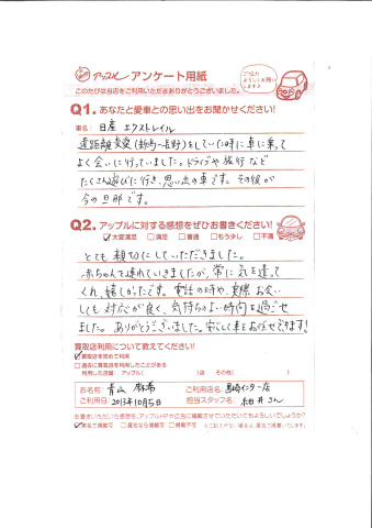ドライブや旅行などたくさん遊びに行き、思い出の車です。