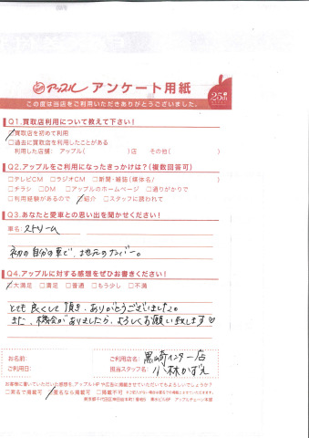 お車のご相談・ 査定だけでもOK! カンタン 入力 30秒 アップルがブランド買取始めました! お電話でも受付中! 受付時間10:00 ~ 18:30 0120-556-522 お車のご相談・ 査定だけでもOK! カンタン 入力 30秒 アップルがブランド買取始めました! お電話でも受付中! 受付時間10:00 ~ 18:30 0120-556-522 アップルがブランド買取始めました! お電話でも受付中! 受付時間10:00 ~ 18:30 0120-556-522 店舗情報 在庫車 スタッフ紹介 ブログ お客様の声 キャンペーン お得 無料査定 click お客様の声 ご記入日: 2014/10/14 T様 初の自分の車で、地元のナンバー。とても良くして頂き、ありがとうございました。また、機会がありましたら、宜しくお願い致します。 前へ 次へ お客様の声一覧を見る