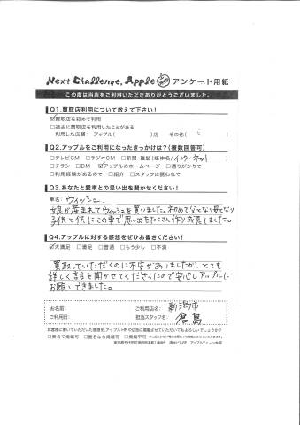 お車のご相談・ 査定だけでもOK! カンタン 入力 30秒 アップルがブランド買取始めました! お電話でも受付中! 受付時間10:00 ~ 18:30 0120-556-522 お車のご相談・ 査定だけでもOK! カンタン 入力 30秒 アップルがブランド買取始めました! お電話でも受付中! 受付時間10:00 ~ 18:30 0120-556-522 アップルがブランド買取始めました! お電話でも受付中! 受付時間10:00 ~ 18:30 0120-556-522 店舗情報 在庫車 スタッフ紹介 ブログ お客様の声 キャンペーン お得 無料査定 click お客様の声 ご記入日: 2015/04/28 I様 娘が産まれてウィッシュを買いました。初めて父となり母となり子供と共にこの車で思い出をだくさん作り成長しました。買取っていただくのに不安がありましたが、とても詳しく話を聞かせてくださったので安心しアップルにお願いできました。 前へ 次へ お客様の声一覧を見る