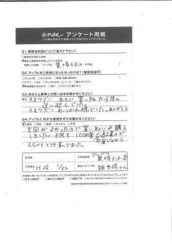 お車のご相談・ 査定だけでもOK! カンタン 入力 30秒 アップルがブランド買取始めました! お電話でも受付中! 受付時間10:00 ~ 18:30 0120-556-522 お車のご相談・ 査定だけでもOK! カンタン 入力 30秒 アップルがブランド買取始めました! お電話でも受付中! 受付時間10:00 ~ 18:30 0120-556-522 アップルがブランド買取始めました! お電話でも受付中! 受付時間10:00 ~ 18:30 0120-556-522 店舗情報 在庫車 スタッフ紹介 ブログ お客様の声 キャンペーン お得 無料査定 click お客様の声 ご記入日: 2016/01/22 O様 前回がよかったので、買取&購入しました。子供も100円券で計算しながら駄菓子がえらべてとても喜んでいました。 前へ 次へ お客様の声一覧を見る