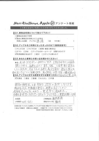 お車のご相談・ 査定だけでもOK! カンタン 入力 30秒 アップルがブランド買取始めました! お電話でも受付中! 受付時間10:00 ~ 18:30 0120-556-522 お車のご相談・ 査定だけでもOK! カンタン 入力 30秒 アップルがブランド買取始めました! お電話でも受付中! 受付時間10:00 ~ 18:30 0120-556-522 アップルがブランド買取始めました! お電話でも受付中! 受付時間10:00 ~ 18:30 0120-556-522 店舗情報 在庫車 スタッフ紹介 ブログ お客様の声 キャンペーン お得 無料査定 click お客様の声 ご記入日: 2015/12/11 A様 担当の細井さんとは今回で3台目の売却となります。細やかな対応や、知識も豊富で信頼があることから今回もアップルさんのみで一発売却を決めました。今後もお世話になると思いますので少しでも高い査定をお願いします。 前へ 次へ お客様の声一覧を見る