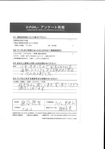 お車のご相談・ 査定だけでもOK! カンタン 入力 30秒 アップルがブランド買取始めました! お電話でも受付中! 受付時間10:00 ~ 18:30 0120-556-522 お車のご相談・ 査定だけでもOK! カンタン 入力 30秒 アップルがブランド買取始めました! お電話でも受付中! 受付時間10:00 ~ 18:30 0120-556-522 アップルがブランド買取始めました! お電話でも受付中! 受付時間10:00 ~ 18:30 0120-556-522 店舗情報 在庫車 スタッフ紹介 ブログ お客様の声 キャンペーン お得 無料査定 click お客様の声 ご記入日: 2016/06/26 椎谷様 15年間使用したので愛着はありました。通勤・ドライブと色々な事があり思い出の沢山ある車でした。経年劣化の激しい車を買い取り頂き満足しております。 前へ 次へ お客様の声一覧を見る