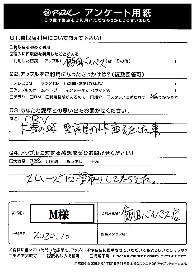 お車のご相談・ 査定だけでもOK! カンタン 入力 30秒 アップルがブランド買取始めました! お電話でも受付中! 受付時間10:00 ~ 19:00 0265-52-4040 お車のご相談・ 査定だけでもOK! カンタン 入力 30秒 アップルがブランド買取始めました! お電話でも受付中! 受付時間10:00 ~ 19:00 0265-52-4040 アップルがブランド買取始めました! お電話でも受付中! 受付時間10:00 ~ 19:00 0265-52-4040 店舗情報 在庫車 スタッフ紹介 ブログ お客様の声 キャンペーン 無料査定 click お客様の声 ご記入日: 2020/10/01 M様 車名:ホンダ CR-V Q あなたと愛車との思い出をお聞かせください!大雪の時 聖高原の峠越えをした事Q アップルに対する感想をぜひお聞かせください感想:満足スムーズに買取りしてもらえた 前へ 次へ お客様の声一覧を見る