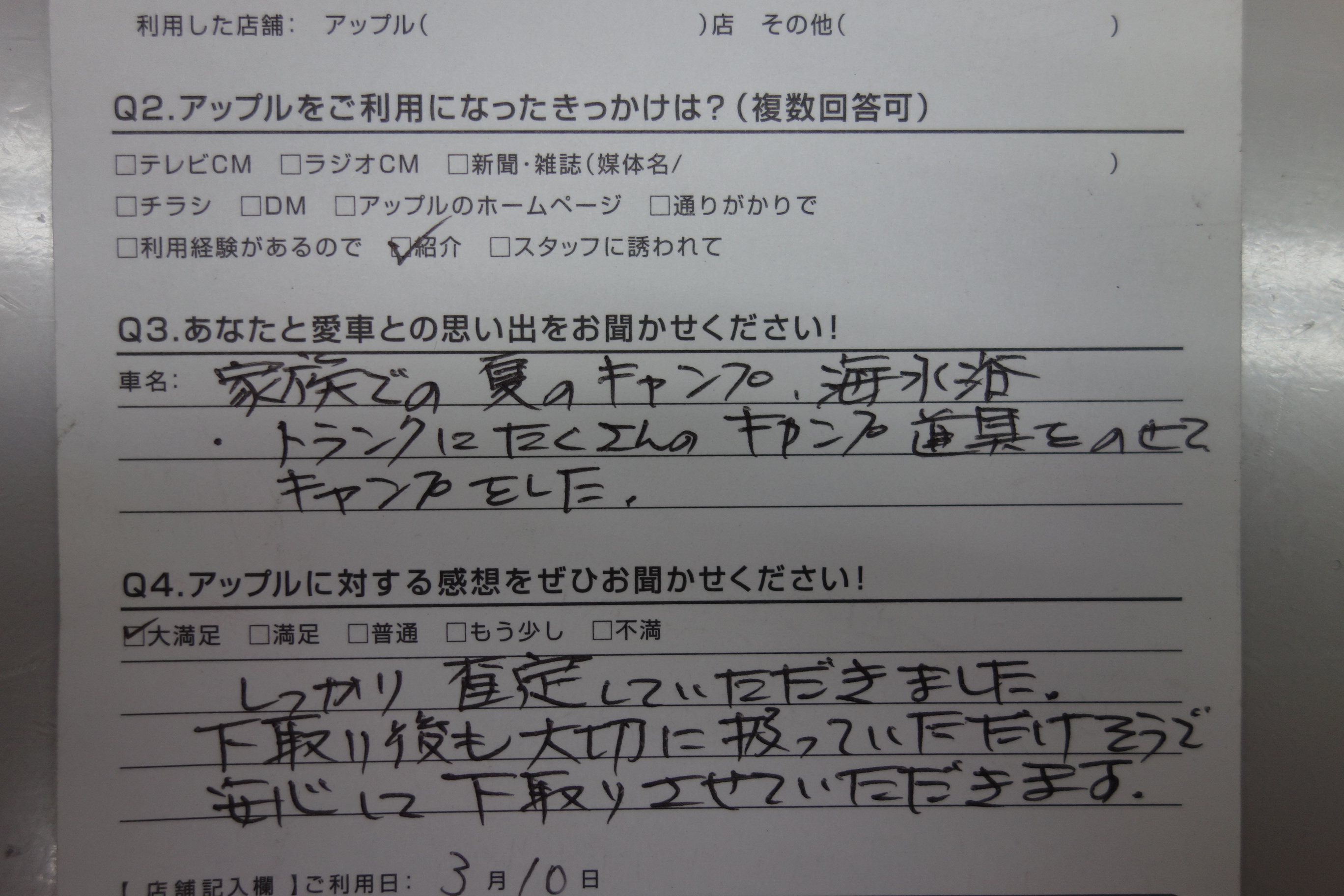 しっかり査定していただきました。下取り後も大切に扱っていただけそうで安心して下取りさせていただきます。