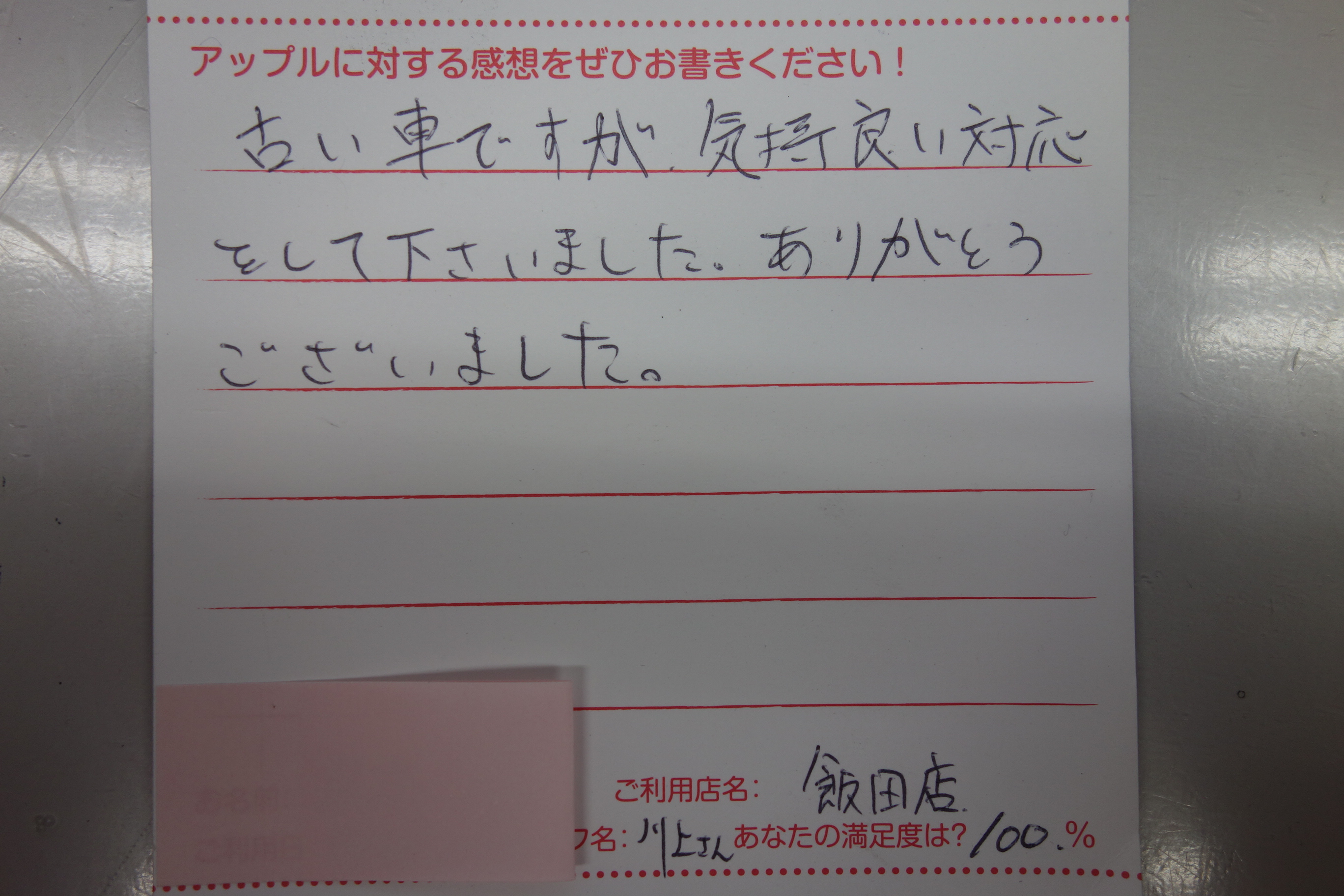 お車のご相談・ 査定だけでもOK! カンタン 入力 30秒 アップルがブランド買取始めました! お電話でも受付中! 受付時間10:00 ~ 19:00 0265-52-4040 お車のご相談・ 査定だけでもOK! カンタン 入力 30秒 アップルがブランド買取始めました! お電話でも受付中! 受付時間10:00 ~ 19:00 0265-52-4040 アップルがブランド買取始めました! お電話でも受付中! 受付時間10:00 ~ 19:00 0265-52-4040 店舗情報 在庫車 スタッフ紹介 ブログ お客様の声 キャンペーン 無料査定 click お客様の声 ご記入日: 2012/10/19 匿名希望Y様 車名:国産車その他 その他 古い車ですが、気持ち良い対応をして下さいました。ありがとうございました。 前へ 次へ お客様の声一覧を見る