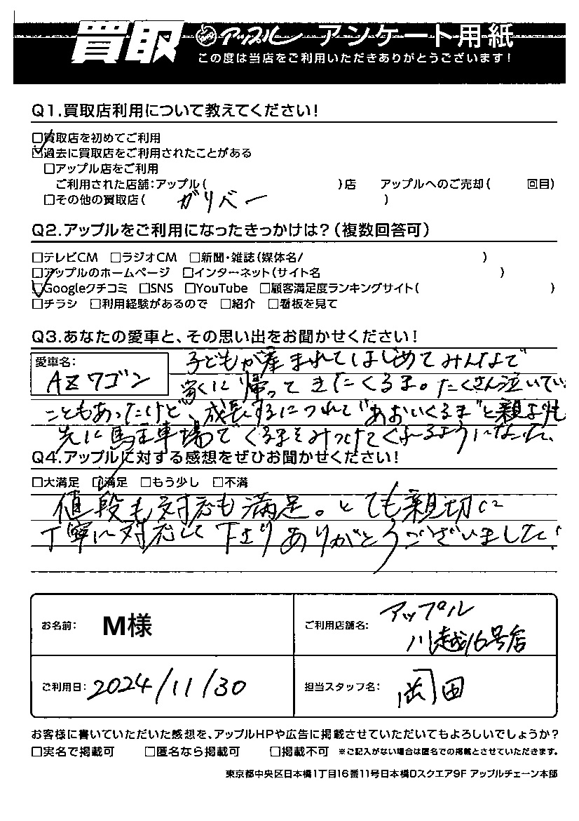 値段も対応も満足。とても親切に丁寧に対応して下さりありがとうございました!