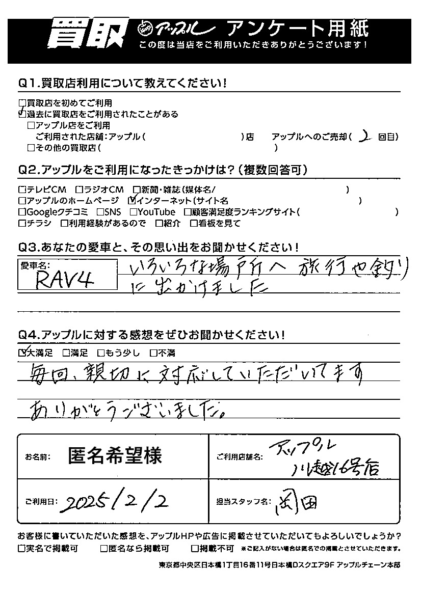匿名希望様 車名:トヨタ RAV4(R04年10月~RAV4 PHV含む)