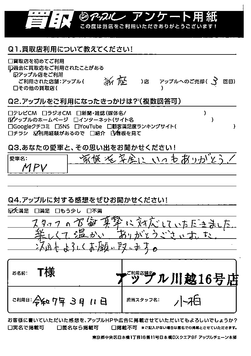 T様 車名:マツダ MPV