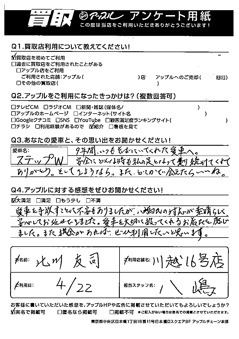 北川 友司様 車名:ホンダ ステップワゴン