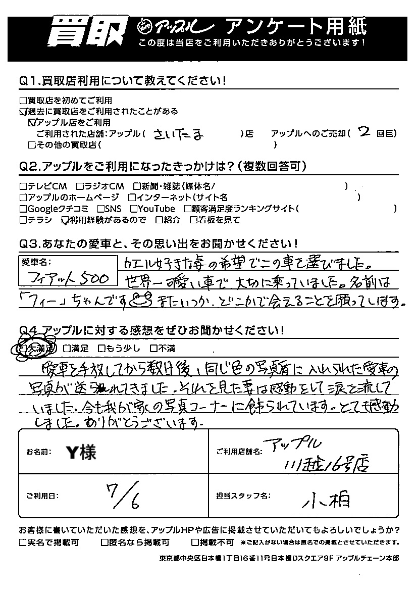 Y様 車名:フィアット 500(チンクエチェント)