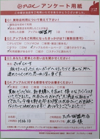 今後も車を売却する際は水谷さんにお世話になりたいと