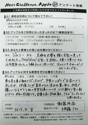 金額も高く評価頂き さすがアップルさん!と思いました。