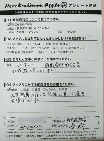 お車のご相談・ 査定だけでもOK! カンタン 入力 30秒 アップルがブランド買取始めました! お電話でも受付中! 受付時間9:30 ~ 18:30 052-735-6411 お車のご相談・ 査定だけでもOK! カンタン 入力 30秒 アップルがブランド買取始めました! お電話でも受付中! 受付時間9:30 ~ 18:30 052-735-6411 アップルがブランド買取始めました! お電話でも受付中! 受付時間9:30 ~ 18:30 052-735-6411 店舗情報 在庫車 スタッフ紹介 ブログ お客様の声 キャンペーン 無料査定 click お客様の声 ご記入日: 2015/10/12 E・S様 ■ご利用日時■ H27 年10月12日■車種■ ハリアー■担当者■ 長崎【アップルに対する感想をぜひお書きください】満足度★★★★★大変親身になって相談に乗って頂き大満足でした 前へ 次へ お客様の声一覧を見る