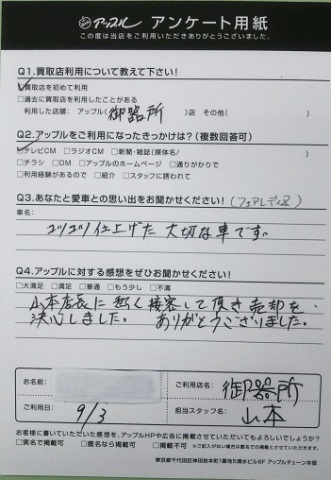 山本店長に熱く接客して頂き売却を決心しました