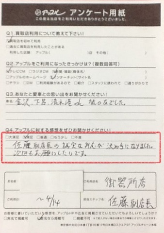 佐藤副店長の誠実な対応が決め手になりました。