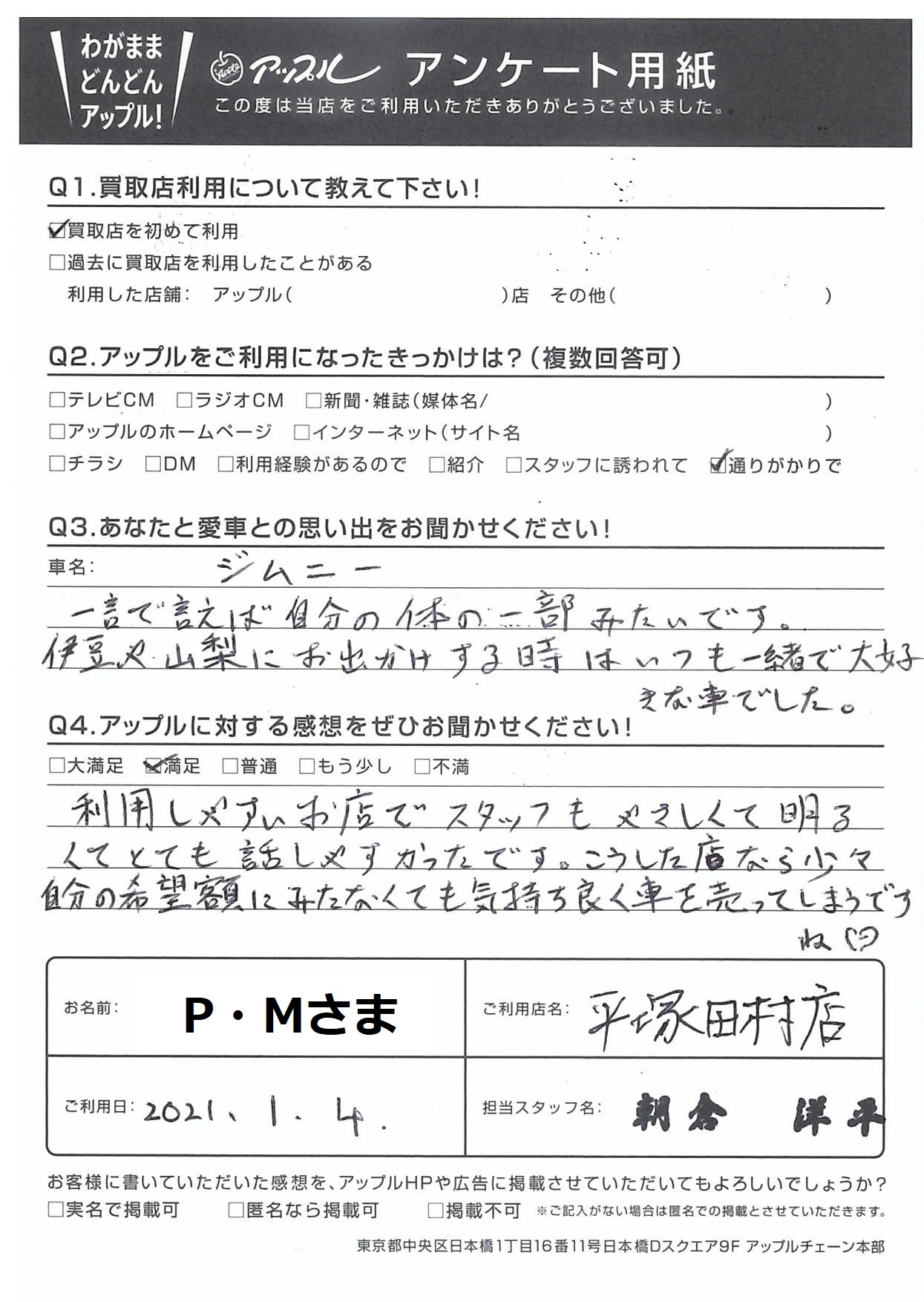 神奈川県厚木市 P・M様 車名:スズキ ジムニー