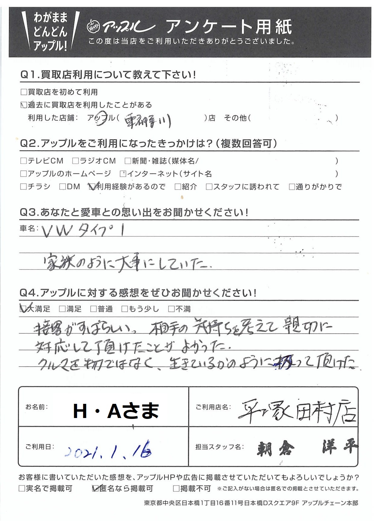 神奈川県横浜市 H・A様 車名:フォルクスワーゲン タイプⅠ