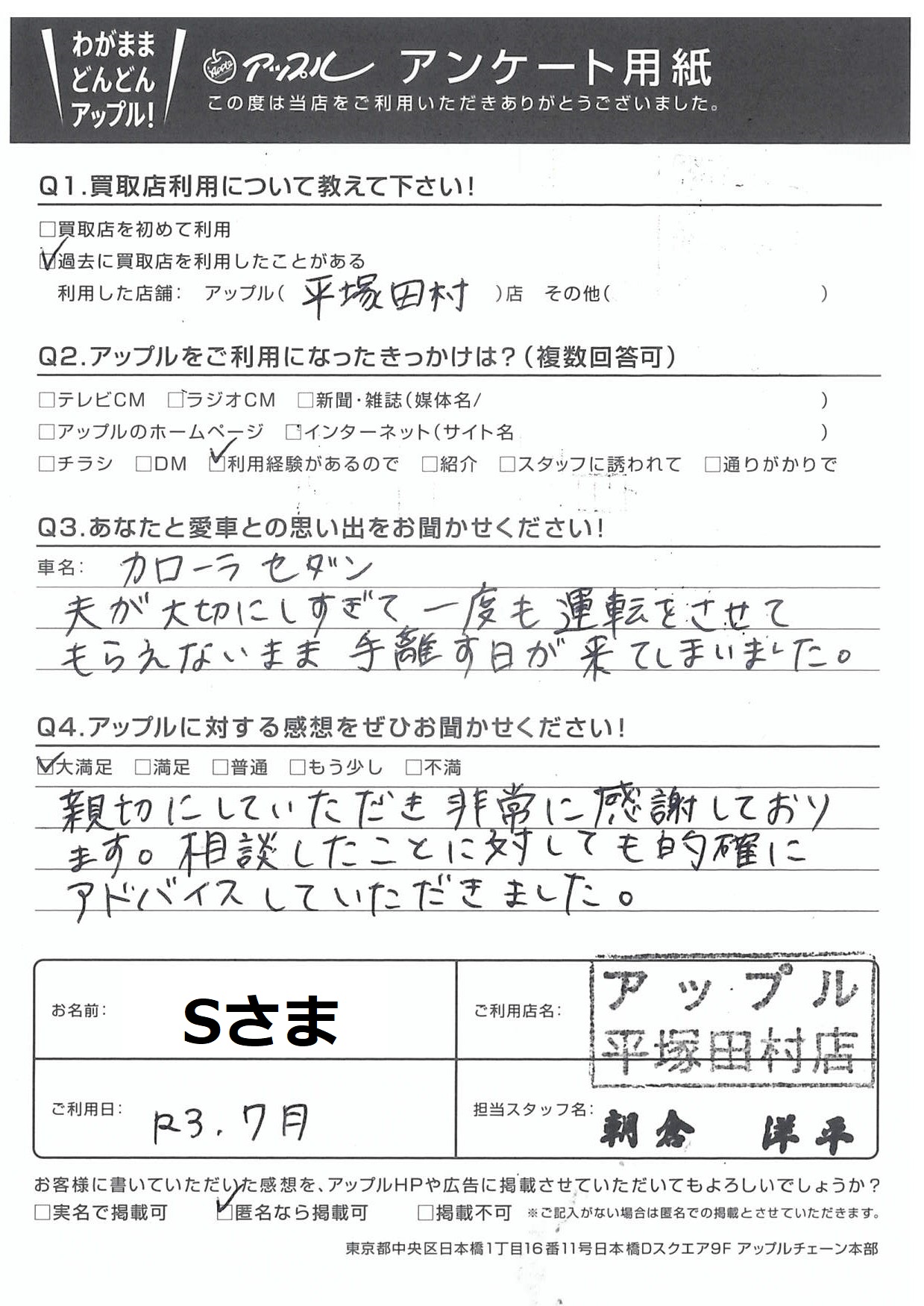 夫が大切にしすぎて一度も運転をさせてもらえないまま、手離す日が来てしまいました。
