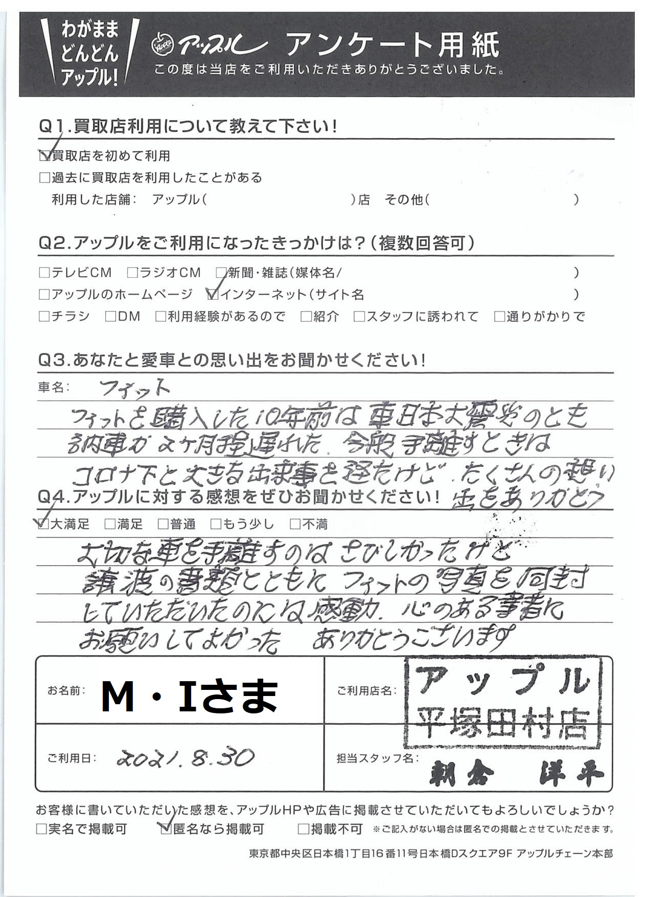 M・I様 車名:ホンダ フィットハイブリッド(~H25年9月)
