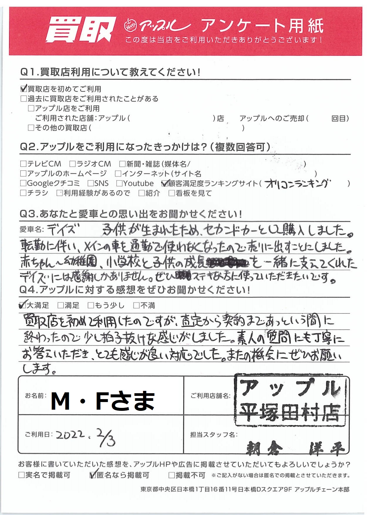 買取店を初めて利用したのですが、査定から契約まであっという間に終わったので少し拍子抜けな感じがしました。