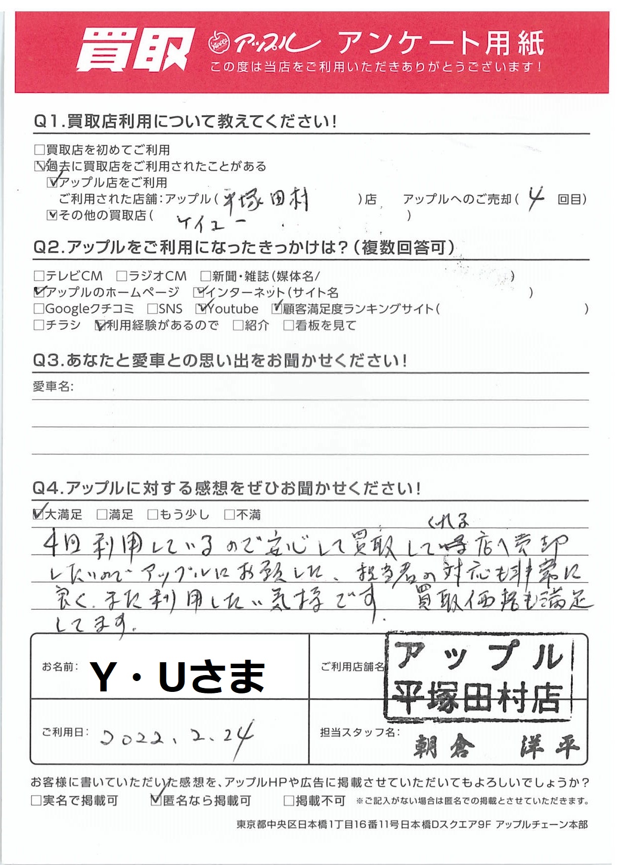 4回利用しているので安心して買取してくれる店へ売却したいのでアップルにお願いした。