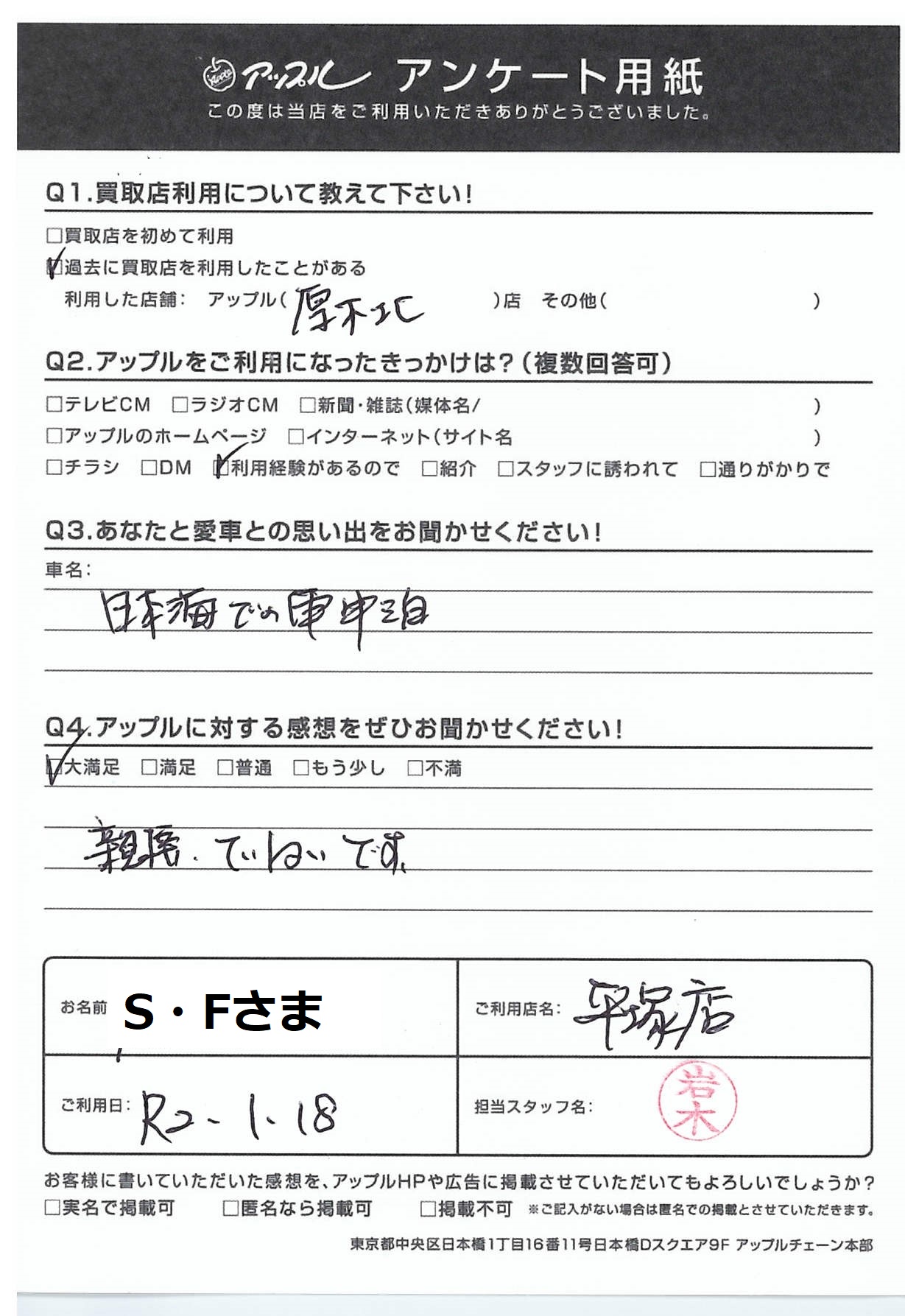 神奈川県伊勢原市 S・F様 車名:スバル エクシーガ