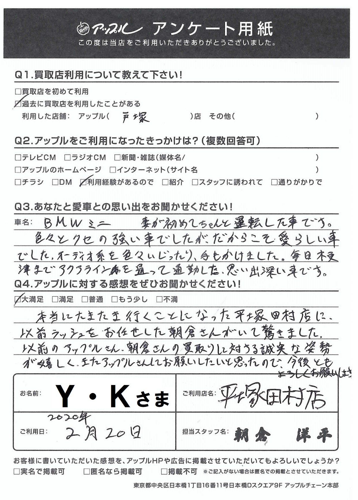 神奈川県横浜市 Y・K様 車名:ミニ ミニクーペ