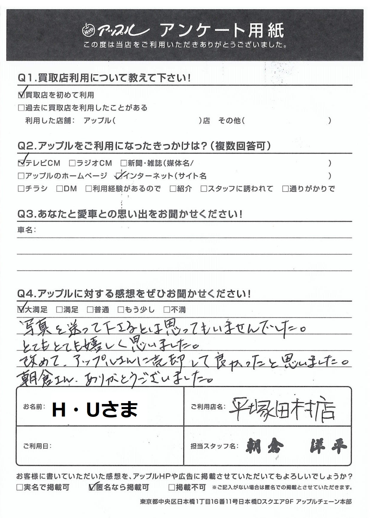 改めて、アップルさんに売却して良かったと思いました。朝倉さんありがとうございました。