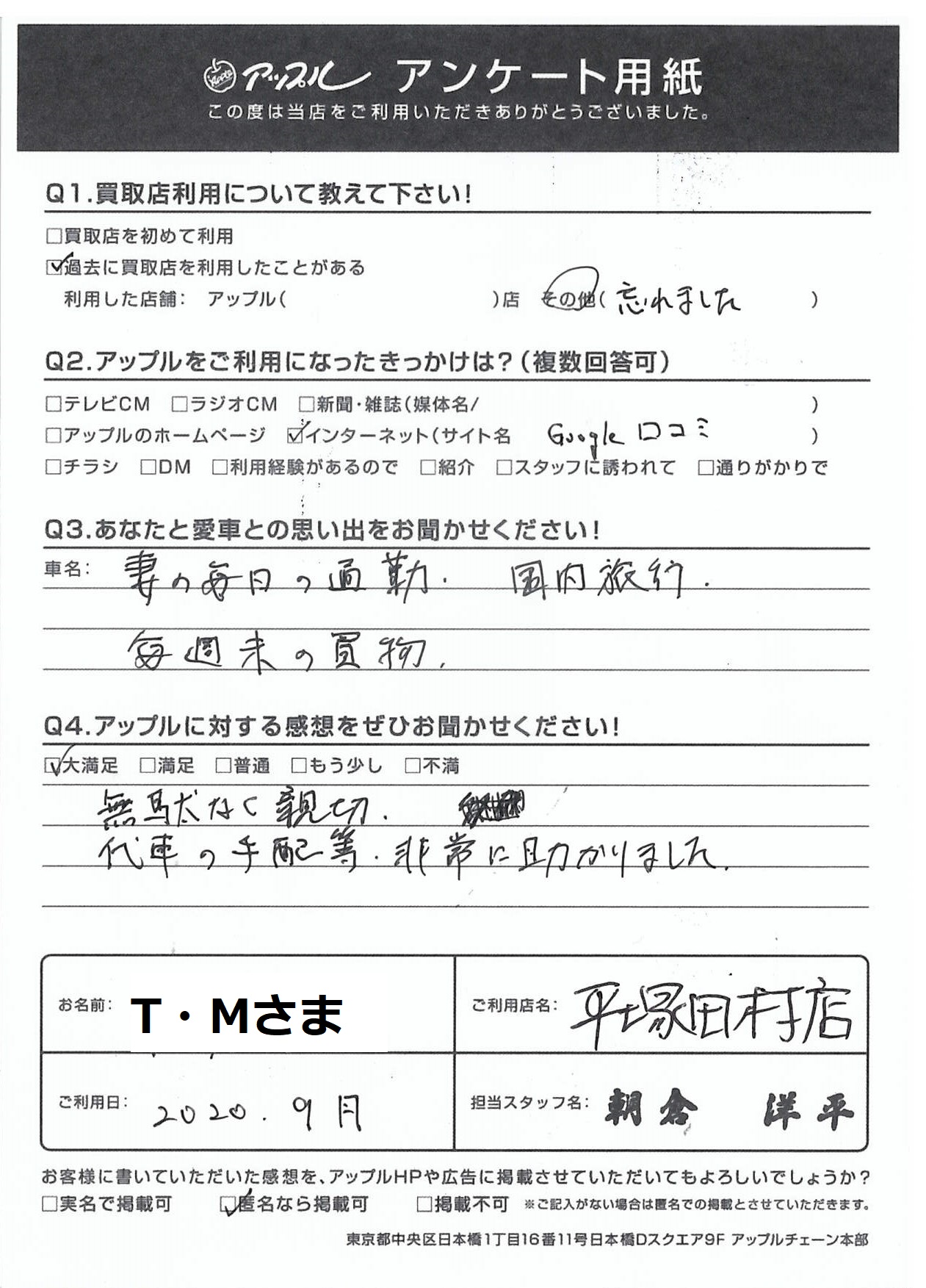 また機会が御座いましたら、アップル平塚田村店をご利用下さい。