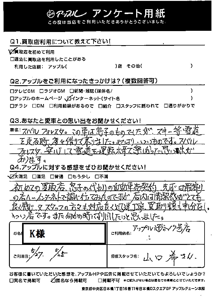 K様 車名:スバル フォレスター