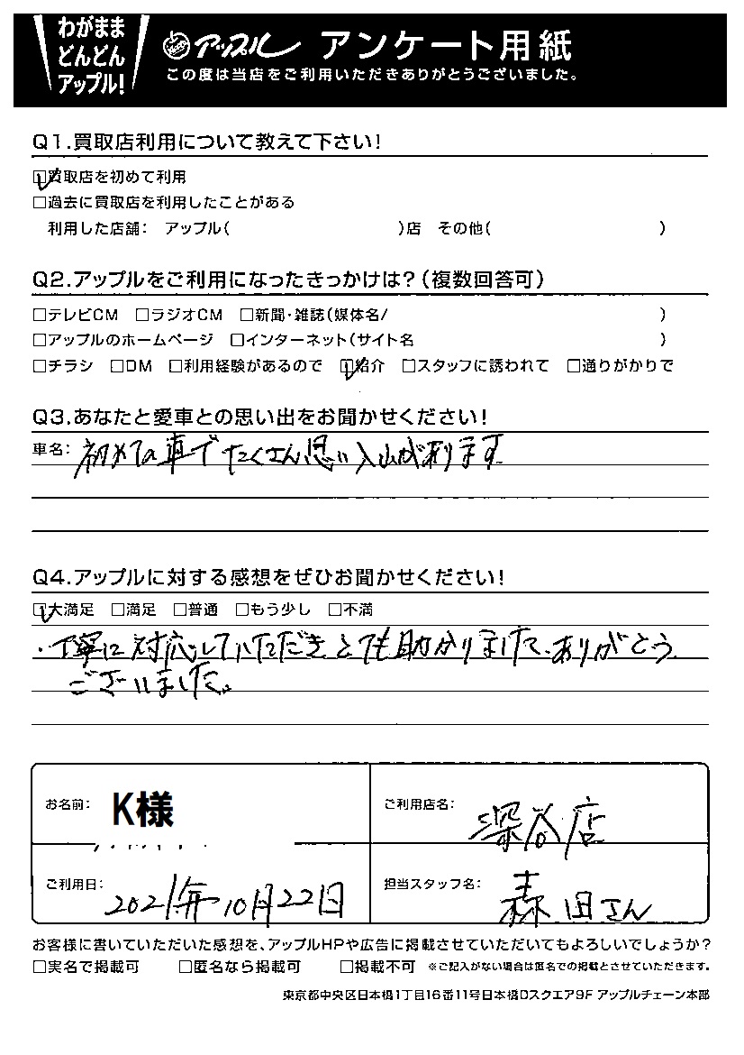 丁寧に対応していただき、とても助かりました。ありがとうございました。