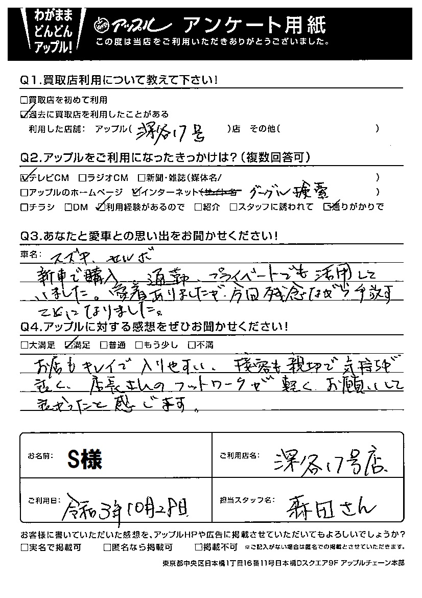 S様 車名:スズキ セルボ