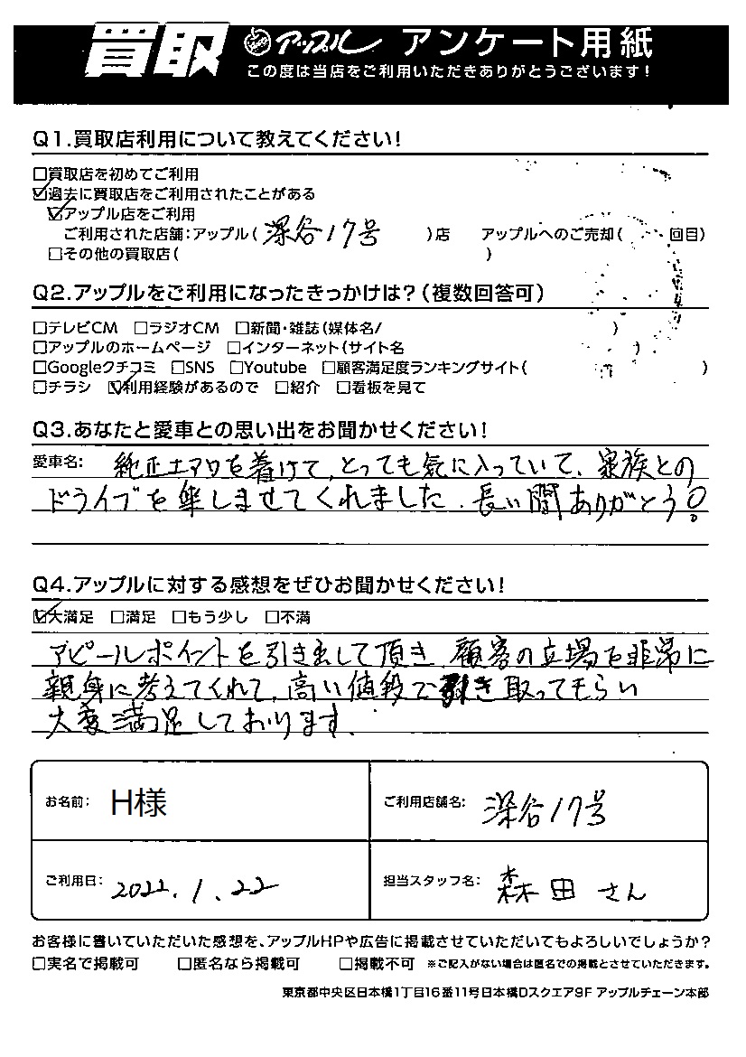 親身に考えてくれて、高い値段で引き取ってもらい