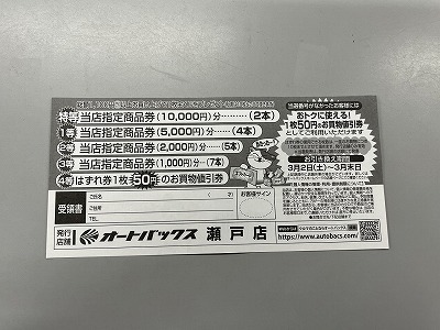 先月、オートバックスでオイル交換した時にもらった宝くじ4枚があったので
