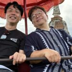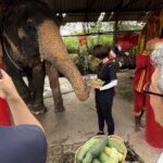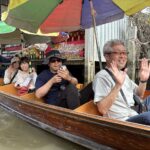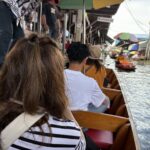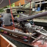 水上マーケットのエンジン付きの船はおそらく中古車のエンジンでしょう