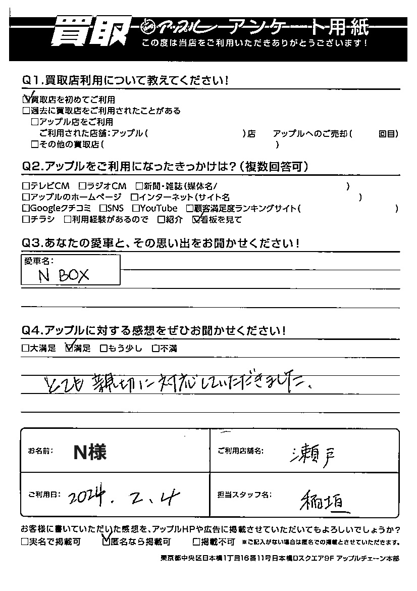 N様 車名:ホンダ N-BOX