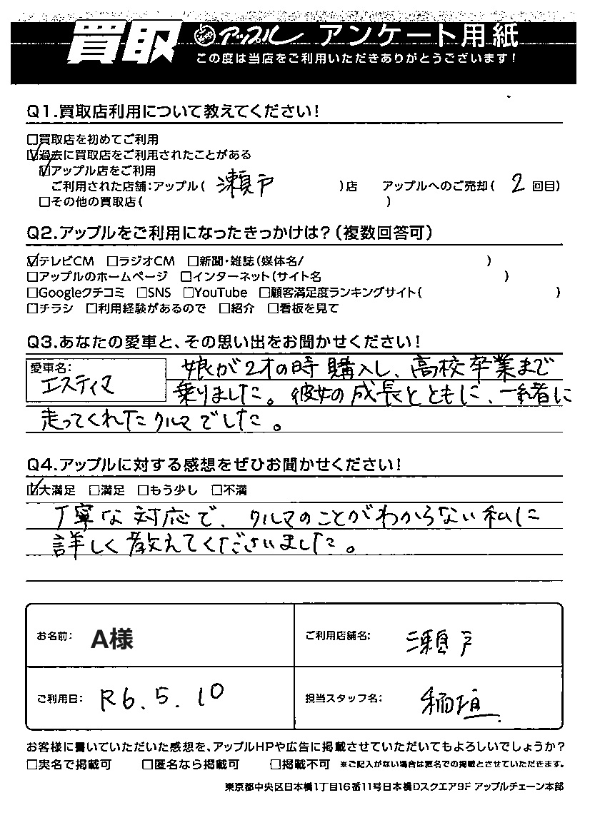 彼女の成長とともに、一緒に走ってくれたクルマでした。