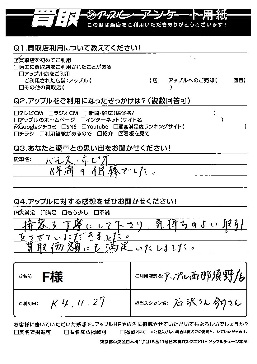買取価額にも満足いたしました。